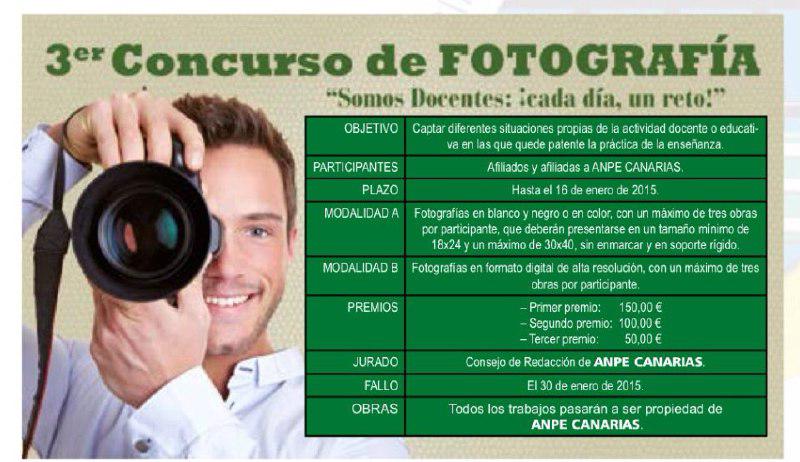 · Los trabajos, según su procedencia, deberán remitirse a ANPE CANARIAS – CONCURSO FOTOGRÁFICO, en las siguientes direcciones: