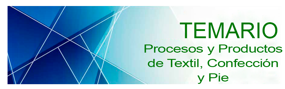 - Procesos de confección industrial de artículos y prendas de vestir y complementos de tejido, piel y otros materiales. Fases y operaciones de fabricación, equipos y parámetros.