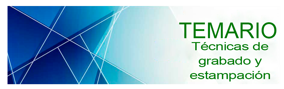 - Estampación calcográfica monócroma. Estampación artística, entrapados y velos. Estampación calcográfica policroma con una plancha, diferentes sistemas. «Fondinos» y «chine collée». Estampación policroma con varias planchas. La sobreimpresión. Sistemas de registro.