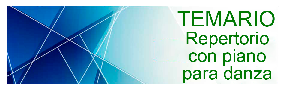 - Características, referidas a la evolución del estilo y de la escritura instrumental, del repertorio pianístico de la música española entre dos siglos: Albéniz, Granados, Falla, Turina y otros. Obras más representativas de este periodo y su aplicación a la clase de danza.