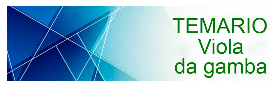- Historia general de la viola da gamba: Orígenes, antecedentes, evolución histórica y diferentes escuelas de luthería. La familia de las violas. Características constructivas. Mantenimiento y conservación. Aspectos fundamentales en la elección del instrumento. Descripción de las diferentes partes del instrumento y del arco.
