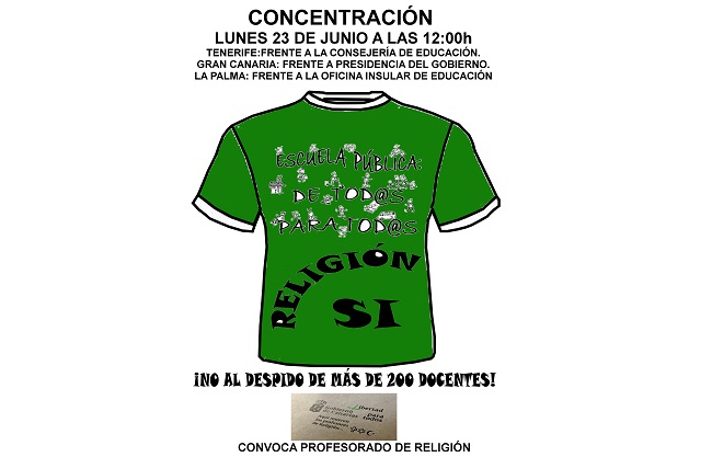 El pasado 10 de junio se envió a la dirección de los centros educativos una comunicación en la que se indicaba el nuevo horario semanal que afectará especialmente a determinadas materias. Nos tememos que esta supone la primera de las medidas que afectarán a las condiciones laborales del profesorado. En este caso afecta directamente al colectivo de profesores de religión, que nos ha hecho llegar la preocupación por lo que puede implicar la reducción horaria del 50% en su carga horaria: ¡¡más de 200 docentes sin trabajo!!